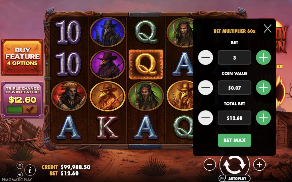 Play Responsibly: Bloody Dawn is a high-volatility slot requiring adequate bankroll.